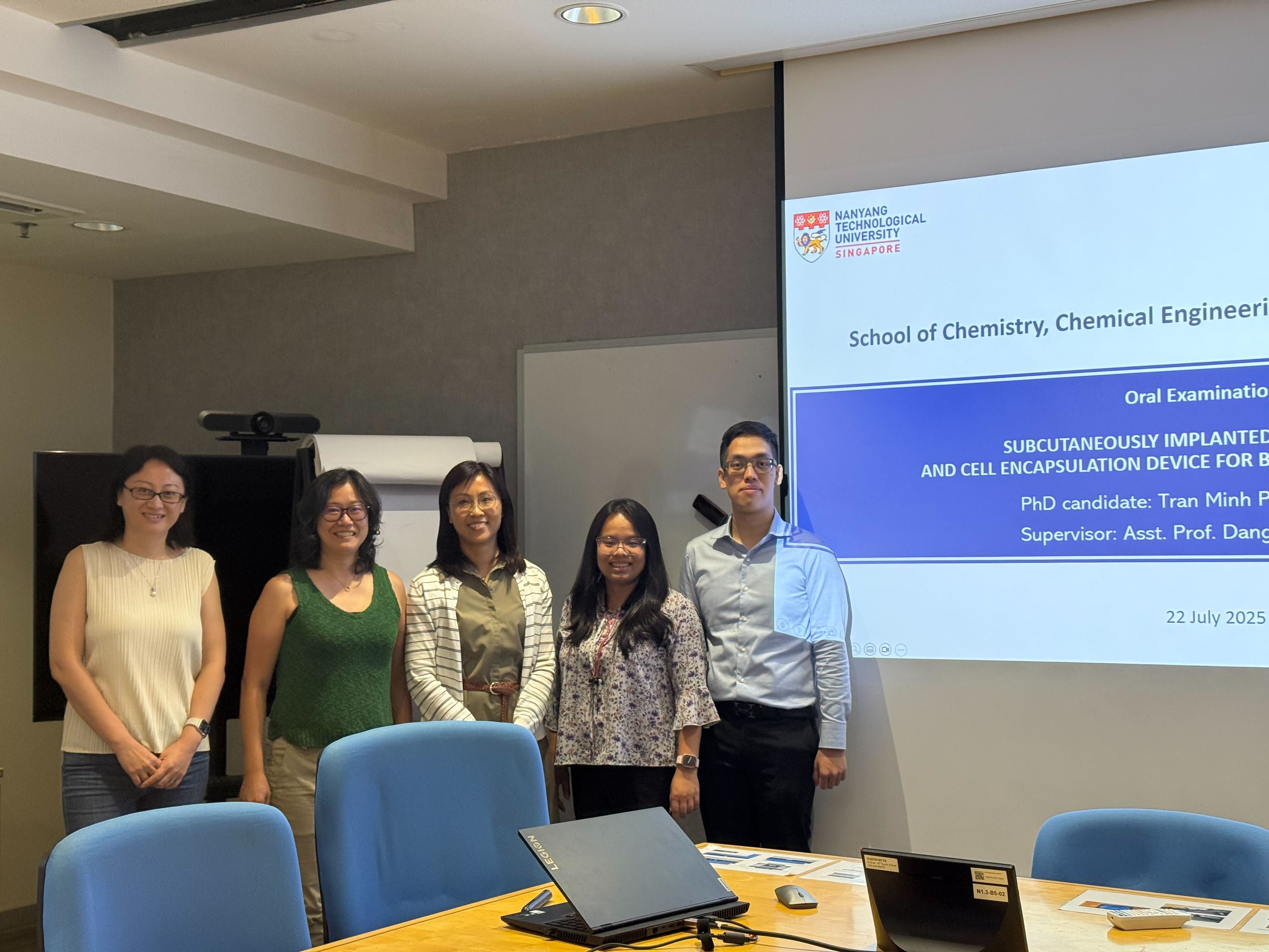 25/04/2025: Congrats to our lab’s newly minted Ph.D., Dr Chi H.L. Pham for successfully defending her Phd thesis today. Her work on efficacy evaluation of macrodevices for cellular therapy in diabetes management has won many awards/recognition in recent years including the Silver Award of Tissue Engineering And Regenerative Medicine International Society (TERMIS-AP) contest, Winner of NTU Society of Women in Engineering Research Showcase, and CCEB Departmental Bronze Award for PhD thesis.